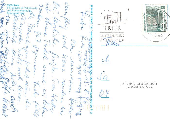 73648857 alte Postkarte Konz Volkskunde- und Freilichtmuseum Roscheider Hof postalisch gelaufen Erhaltung siehe scans [FriedD77] KatCode: 11110007235068