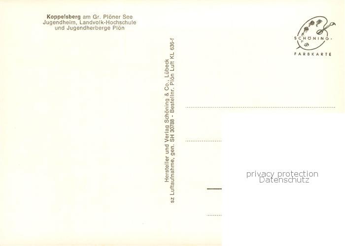 73815871 Koppelsberg am Gr Ploener See Jugendheim Landvolk Hochschule und Jugendherberge Ploen Fliegeraufnahme postalisch nicht gelaufen Erhaltung siehe scans [WerneD78] KatCode: 11110001057057