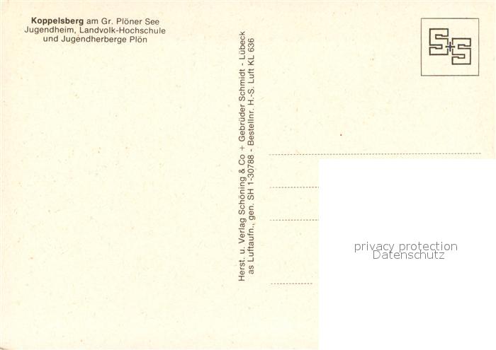 73026212 Koppelsberg Jugendheim Landvolk-Hochschule Jugendherberge Ploen Fliegeraufnahme postalisch nicht gelaufen Erhaltung siehe scans [PaolaD17] KatCode: 11110001057057