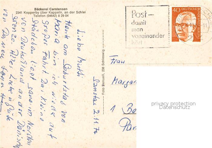 73850697 Kopperby Kappeln Schlei Baeckerei Carstensen Ortspartien postalisch gelaufen Erhaltung siehe scans [FriedD77] alte Postkarte Frie Katcode 11110001059045
