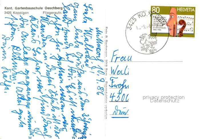 13342636 alte Postkarte Koppigen Kant Gartenbauschule Oeschberg Fliegeraufnahme postalisch gelaufen Erhaltung siehe scans [WerneD78] KatCode: 11470060150026