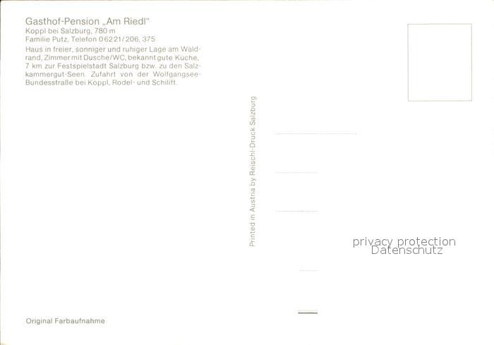 72500379 Koppl Gasthof Pension Am Riedl postalisch nicht gelaufen Erhaltung siehe scans KatCode: 11390323050321