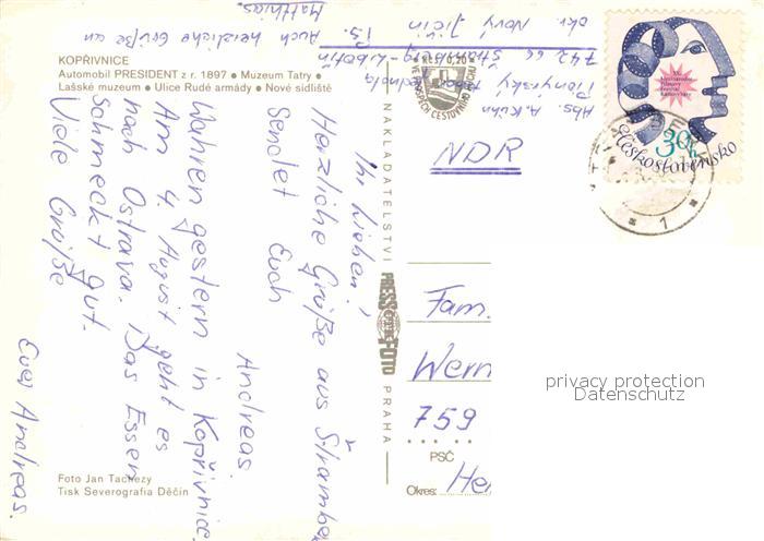 old postcard Koprivnica Automobil President Muzeum Tatry Pferdekutsche postalisch gelaufen Erhaltung siehe scans [LiesaD40]