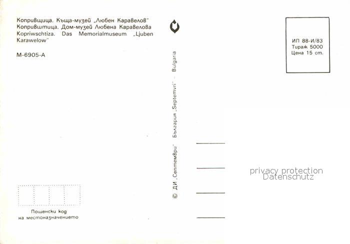 Kopriwschtiza Memorialmuseum Ljuben Karawelow Denkmal Statue postalisch nicht gelaufen Erhaltung siehe scans [FriedD77]