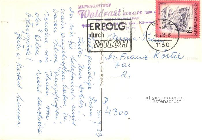 73269153 alte Postkarte Koralpe Alpengasthof Waldrast postalisch gelaufen Erhaltung siehe scans [KathaD81] KatCode: 11390