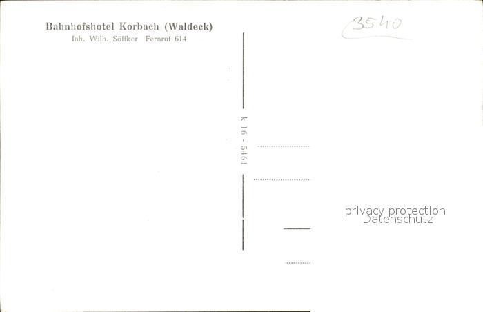 32107421 Korbach Bahnhofshotel postalisch nicht gelaufen Erhaltung siehe scans KatCode: 11110006635015