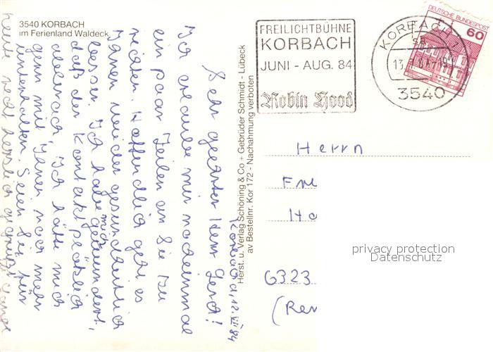 73152011 alte Postkarte Korbach Bahnhofstrasse Enser Tor Rathaus Nachtwaechter Stechbahn postalisch gelaufen Erhaltung siehe scans [KathaD81] KatCode: 11110006635015