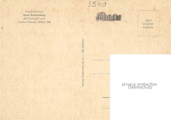 74084693 Korbach Corbach Hessen Hotel Pension Haus Sonnenberg postalisch nicht gelaufen Erhaltung siehe scans [WerneD78] KatCode: 11110006635015
