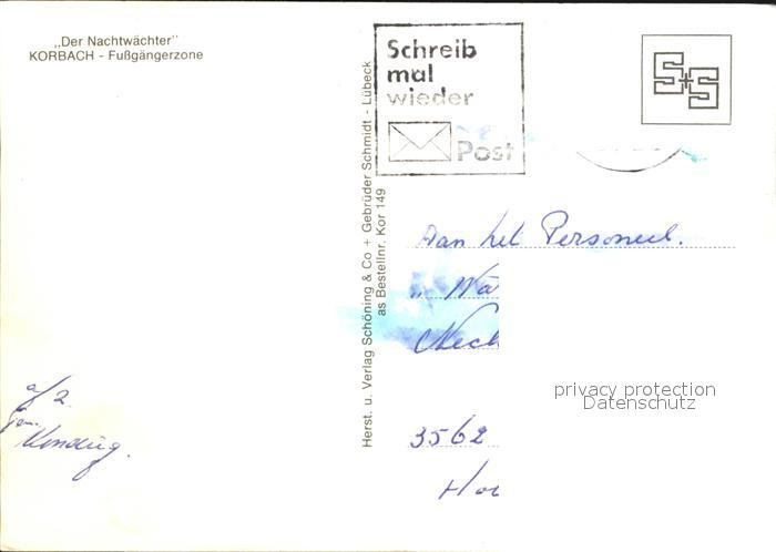 72542488 alte Postkarte Korbach Der Nachtwaechter Fussgaengerzone postalisch gelaufen Erhaltung siehe scans [KathaD75 kv015box] KatCode: 11110006635015