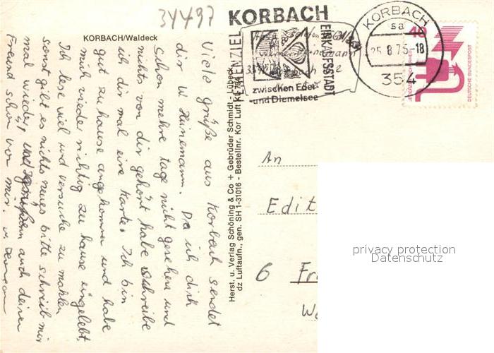 72959863 alte Postkarte Korbach Fliegeraufnahme postalisch gelaufen Erhaltung siehe scans [WerneD78] KatCode: 11110006635015