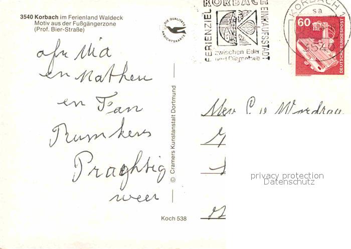 72655126 alte Postkarte Korbach Fuessgaengerzone Professor Bier-Strasse Fachwerk postalisch gelaufen Erhaltung siehe scans [LiesaD40] KatCode: 11110006635015