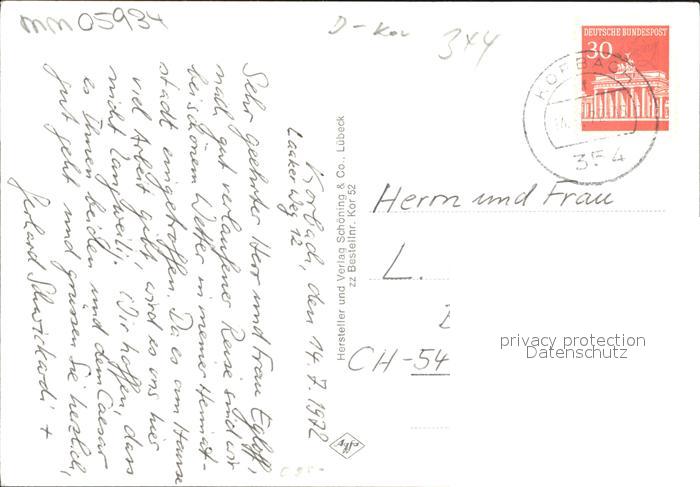 72182273 alte Postkarte Korbach Gesamtansicht Stadtkrankenhaus Stadtpark Stechbahn mit Rathaus und St Kilianskirche Stadtpark Teich postalisch gelaufen Erhaltung siehe scans KatCode: 11110006635015