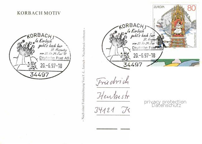 72679728 alte Postkarte Korbach Motiv mit Kirche Zeichnung Kuenstlerkarte postalisch gelaufen Erhaltung siehe scans [FriedD77] KatCode: 11110006635015