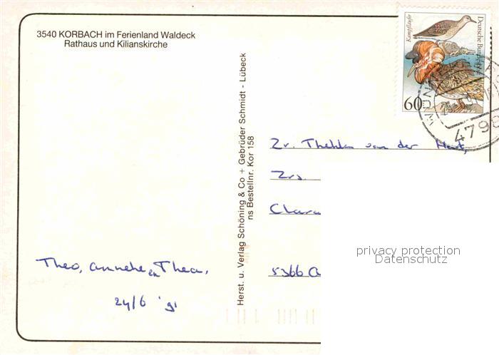72855830 alte Postkarte Korbach Rathaus Kilianskirche Altstadt postalisch gelaufen Erhaltung siehe scans [FriedD77] KatCode: 11110006635015
