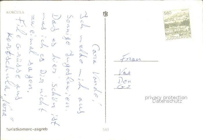 old postcard Korcula Altstadt Halbinsel Folklore Trachten postalisch gelaufen Erhaltung siehe scans