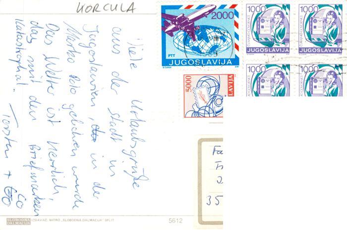 old postcard Korcula Curzola Croatia Fliegeraufnahme postalisch gelaufen Erhaltung siehe scans [FriedD77]
