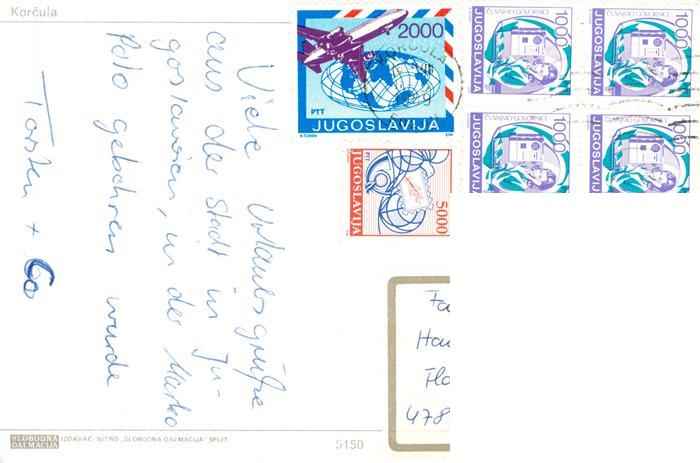 old postcard Korcula Curzola Croatia Panorama Hafen Kueste postalisch gelaufen Fliegeraufnahme Erhaltung siehe scans [FriedD77]