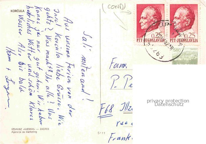 74010366 old postcard Korcula Curzola Croatia Teilansichten postalisch gelaufen Erhaltung siehe scans [WerneD78] KatCode: 11260