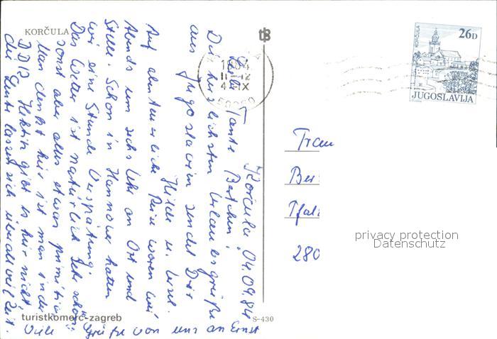old postcard Korcula Fliegeraufnahme Strand Hafen postalisch gelaufen Erhaltung siehe scans