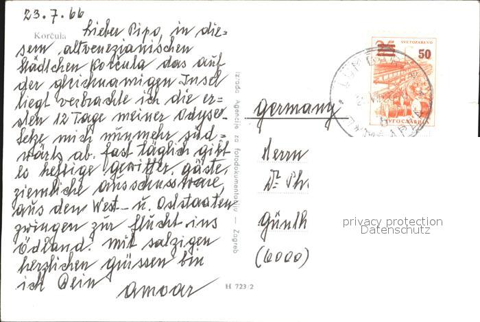old postcard Korcula Inselpanorama postalisch gelaufen Erhaltung siehe scans