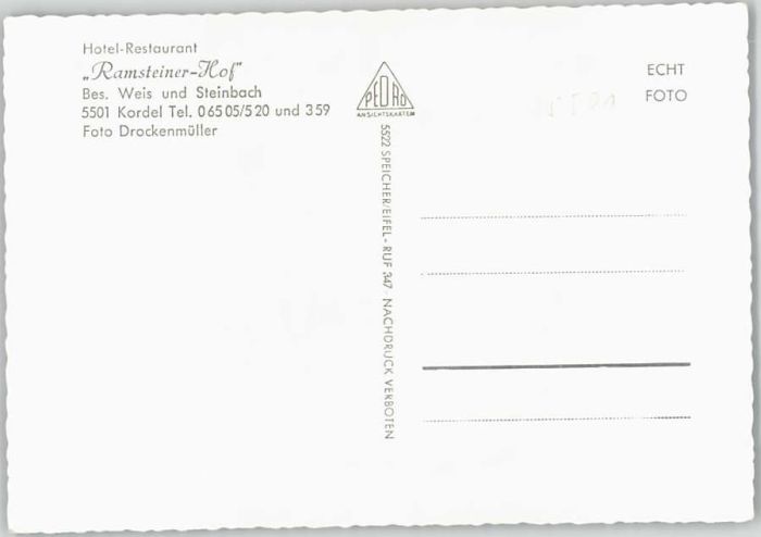 40264788 Kordel Hotel Restaurant Ramsteiner Hof KatCode 11110007235069