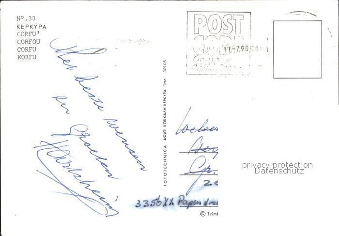 old postcard Korfu Corfu postalisch gelaufen Erhaltung siehe scans