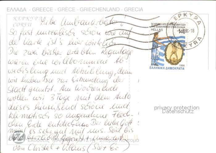 old postcard Korfu Corfu postalisch gelaufen Erhaltung siehe scans