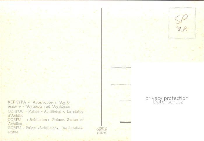 Korfu Corfu Achilles Statue postalisch nicht gelaufen Erhaltung siehe scans