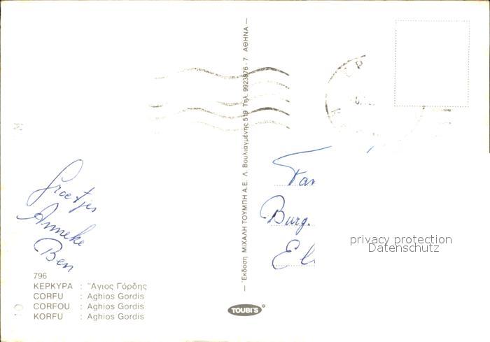 old postcard Korfu Corfu Aghios Gordis postalisch gelaufen Erhaltung siehe scans