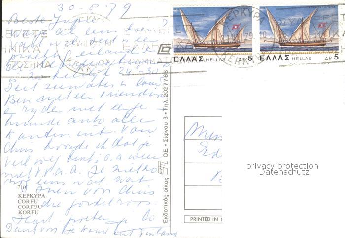 old postcard Korfu Corfu Gebaeude postalisch gelaufen Erhaltung siehe scans