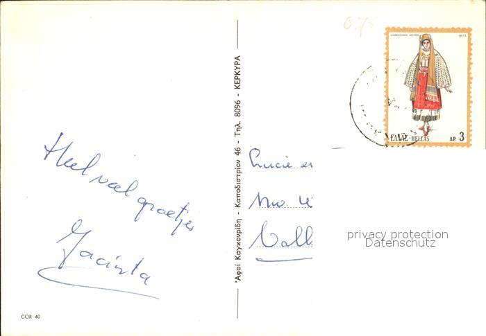 old postcard Korfu Corfu Strand Tracht postalisch gelaufen Erhaltung siehe scans