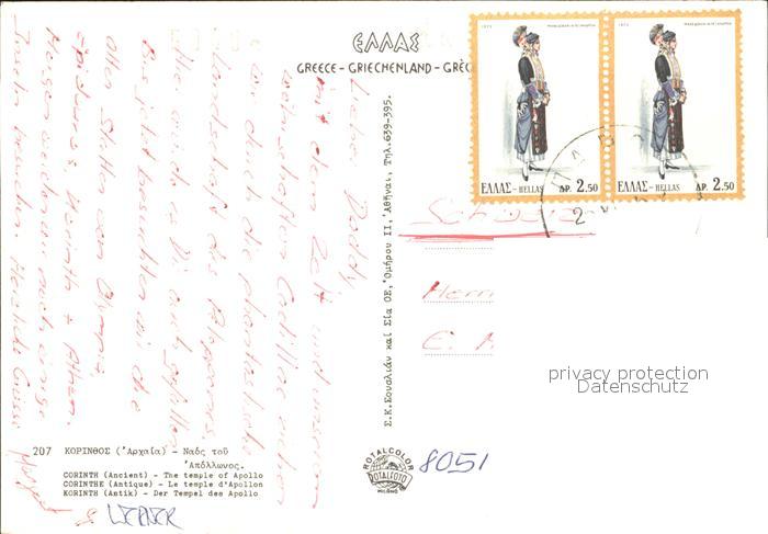 old postcard Korinth Corinthe Der Tempel des Apollo postalisch gelaufen Erhaltung siehe scans
