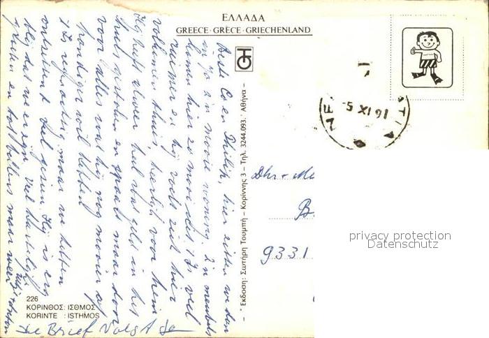 old postcard Korinth Corinthe Isthmos postalisch gelaufen Erhaltung siehe scans