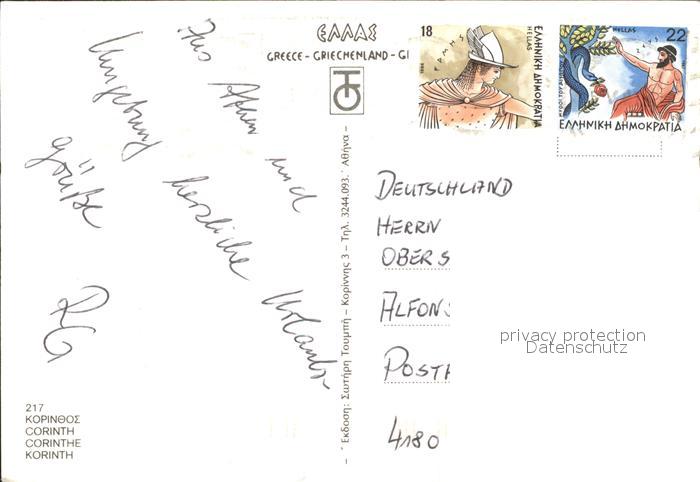 old postcard Korinth Corinthe Ruine Schiff Zug postalisch gelaufen Erhaltung siehe scans