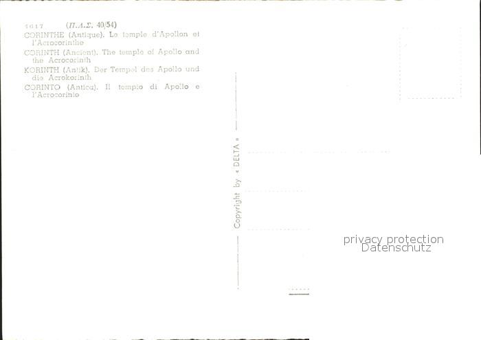 Korinth Corinthe Tempel Apollo Acrokorinth postalisch nicht gelaufen Erhaltung siehe scans