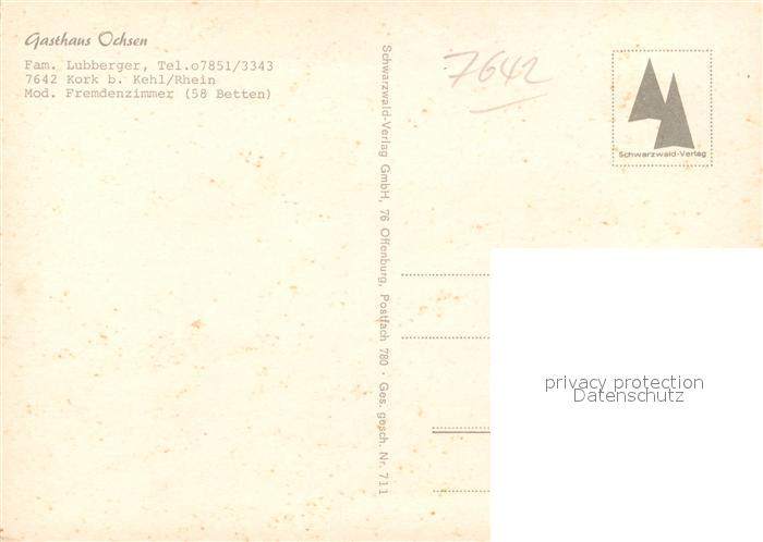 73608868 Kork Kehl Ortenaukreis BW Gasthaus Ochsen postalisch nicht gelaufen Erhaltung siehe scans [KathaD81] KatCode: 11110008317057