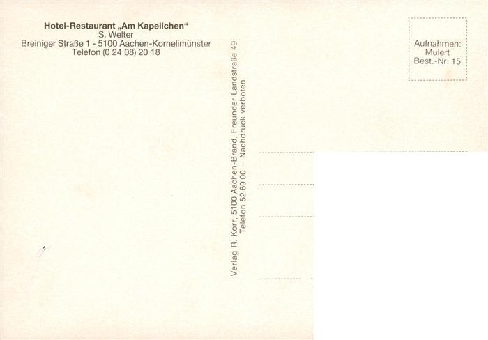 73882714 Kornelimuenster Hotel Restaurant Am Kapellchen Gastraeume Bar Zimmer postalisch nicht gelaufen Erhaltung siehe scans [WerneD78] KatCode: 11110005313000