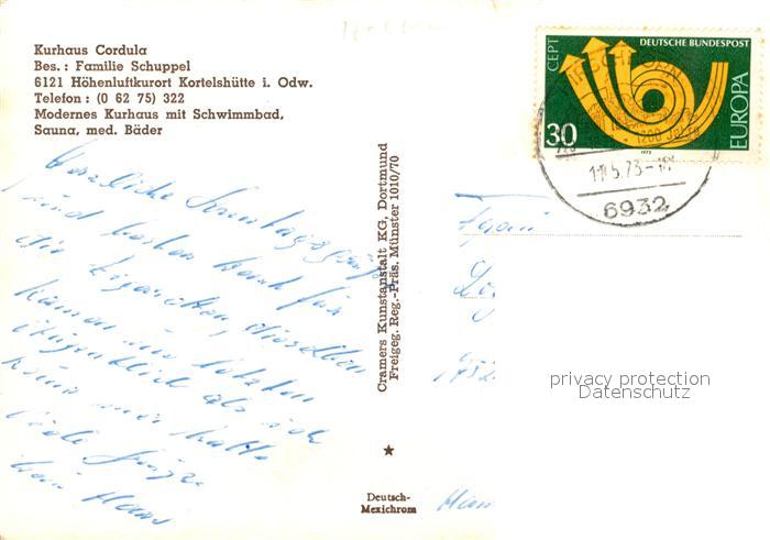 73051579 alte Postkarte Kortelshuette Fliegeraufnahme Kurhaus Cordula postalisch gelaufen Erhaltung siehe scans [NatalD47] KatCode: 11110006437014