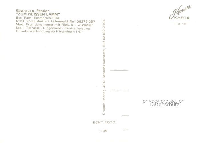 73730992 Kortelshuette Gasthaus Pension Zum Weissen Lamm postalisch nicht gelaufen Erhaltung siehe scans [WerneD78] KatCode: 11110006437014