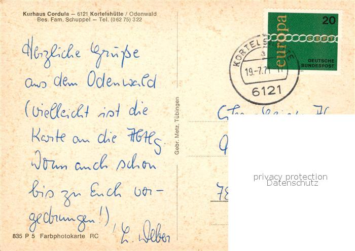 73335160 alte Postkarte Kortelshuette Kurhaus Cordula postalisch gelaufen Erhaltung siehe scans [WerneD78] KatCode: 11110006437014