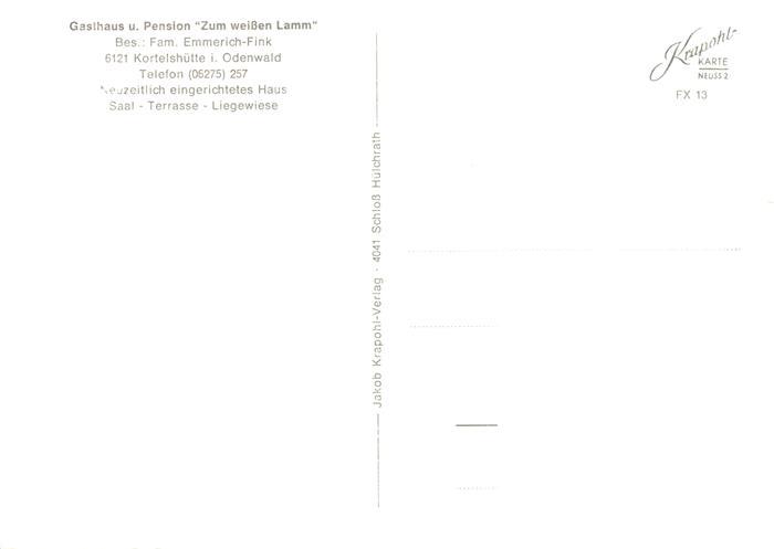 73871829 Kortelshuette Rothenberg Odenwald Gaestehaus Pension Zum weissen Lamm postalisch nicht gelaufen Erhaltung siehe scans [FriedD77] KatCode: 11110006437014