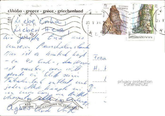old postcard Kos Cos Abendstimmung Tempel Ruine Antike postalisch gelaufen Erhaltung siehe scans