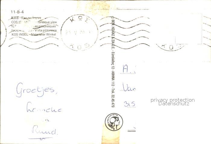 old postcard Kos Cos Boote postalisch gelaufen Erhaltung siehe scans