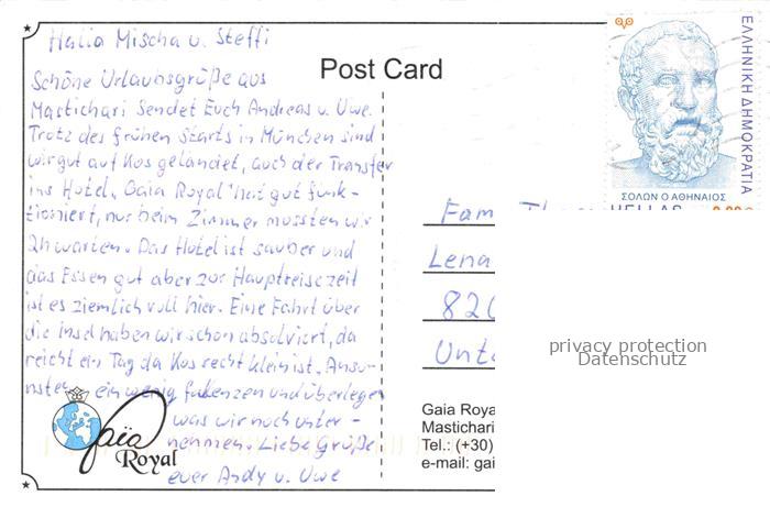 74109822 old postcard Kos Cos Greece Hotel Gaia Royal Mastichari postalisch gelaufen Erhaltung siehe scans [IrynaD87] KatCode: 11190