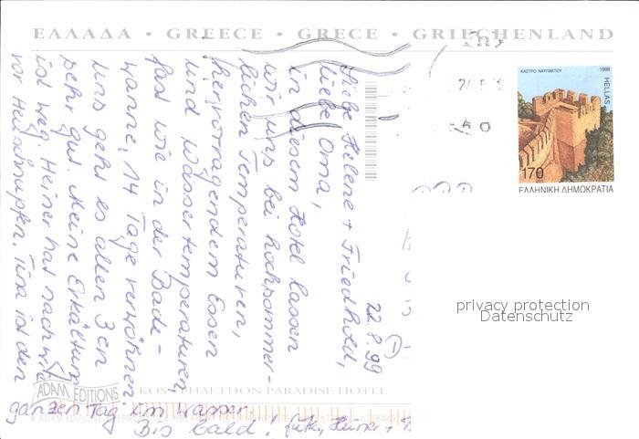 old postcard Kos Cos Hotel Phaethon Paradise postalisch gelaufen Erhaltung siehe scans