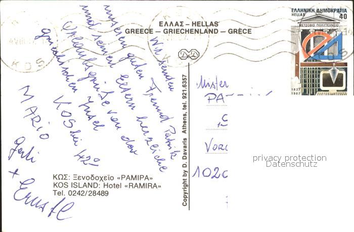 old postcard Kos Cos Hotel Ramira postalisch gelaufen Erhaltung siehe scans