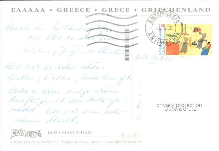 old postcard Kos Cos Mastichari Strand postalisch gelaufen Erhaltung siehe scans