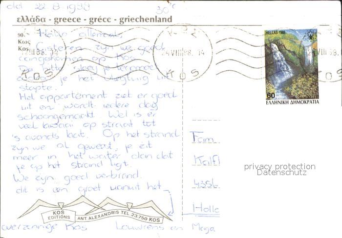 old postcard Kos Cos Palmen Strasse postalisch gelaufen