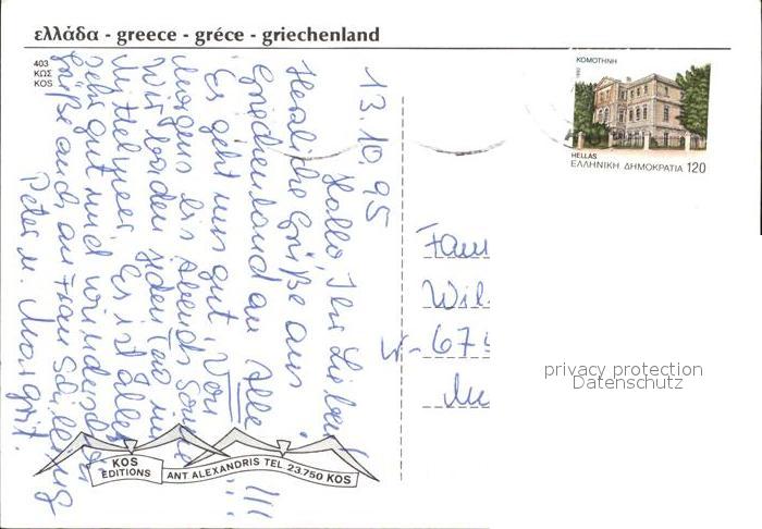 old postcard Kos Cos Palmenstrasse Teilansichten postalisch gelaufen