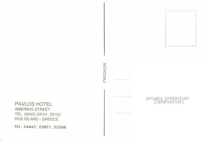 Kos Cos Pavlos Hotel postalisch nicht gelaufen Erhaltung siehe scans [LiesaD40]